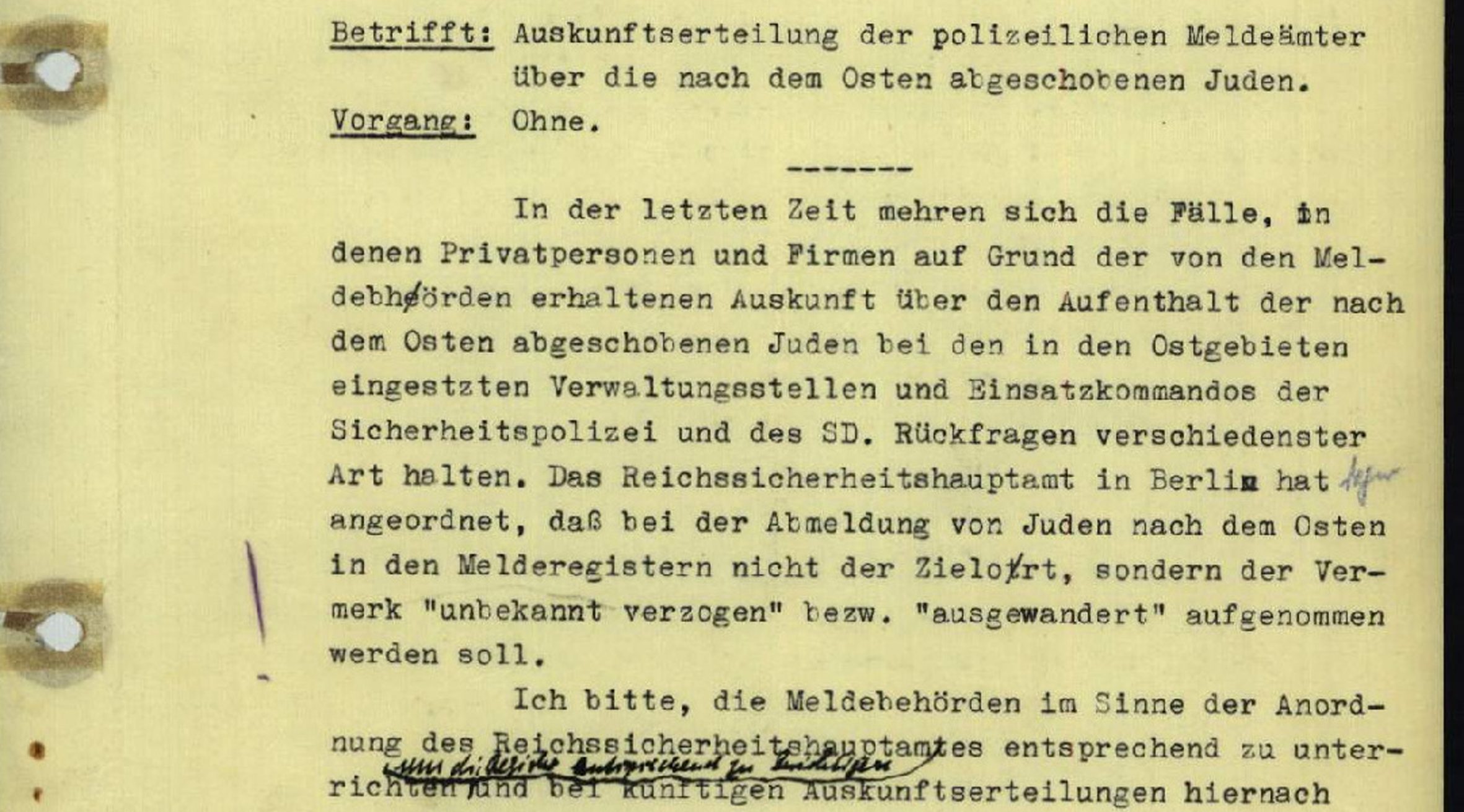 Das digitale Gedenkbuch der Landeshauptstadt Düsseldorf zur Erinnerung an die jüdischen Opfer 1933 – 1945 dokumentiert die Lebensdaten und Lebenswege von 2.633 Düsseldorferinnen und Düsseldorfern, die Opfer der nationalsozialistischen Judenverfolgung wurden. Wir haben den Anspruch, diese Menschen als individuelle Persönlichkeiten wieder sichtbar zu machen. Die Nationalsozialisten haben versucht, diese Menschen und ihre Lebenswege aus der Geschichte zu tilgen. Das führte sogar so weit, dass, wie in dem oben dargestellten Dokument aus der Feder der Gestapoleitstelle Düsseldorf, die Meldebehörden angewiesen wurden, nach der Deportation nicht das konkrete Ziel des Transportes einzutragen, sondern nur “unbekannt verzogen” oder “ausgewandert”. Das digitale Gedenkbuch der Landeshauptstadt Düsseldorf zur Erinnerung an die jüdischen Opfer 1933 – 1945 will dieses Ansinnen umkehren und ein lebensgeschichtliches Gedenken dagegen setzen. Um dies zu ermöglichen, sollen Familienzusammenhänge, Wohnadressen, berufliche Ausbildung und viele Details zu jedem Menschen ermittelt werden. Die Texte werden durch persönliche Fotos und Dokumente ergänzt, wenn dies möglich ist.