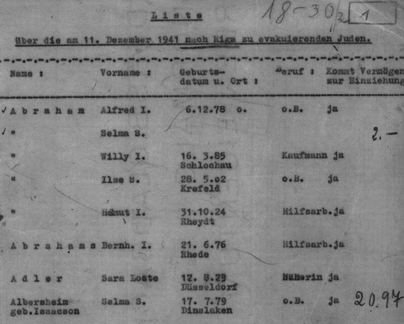 Am 8. Juni 1939 zog Charlotte Adler von Düsseldorf nach Mönchengladbach, wo sie bis zu ihrer Deportation lebte. Hier wohnte sie bei ihrer Tante Else Stern, geborene Cohen, auf der Lüpertzender Straße 40. Am 11. Dezember 1941 wurde die 18-jährige Charlotte Adler von Düsseldorf aus in das Ghetto Riga deportiert. Auf der Deportationsliste wurde sie als Näherin aufgeführt. Sie verstarb 1944 mit 21 Jahren.