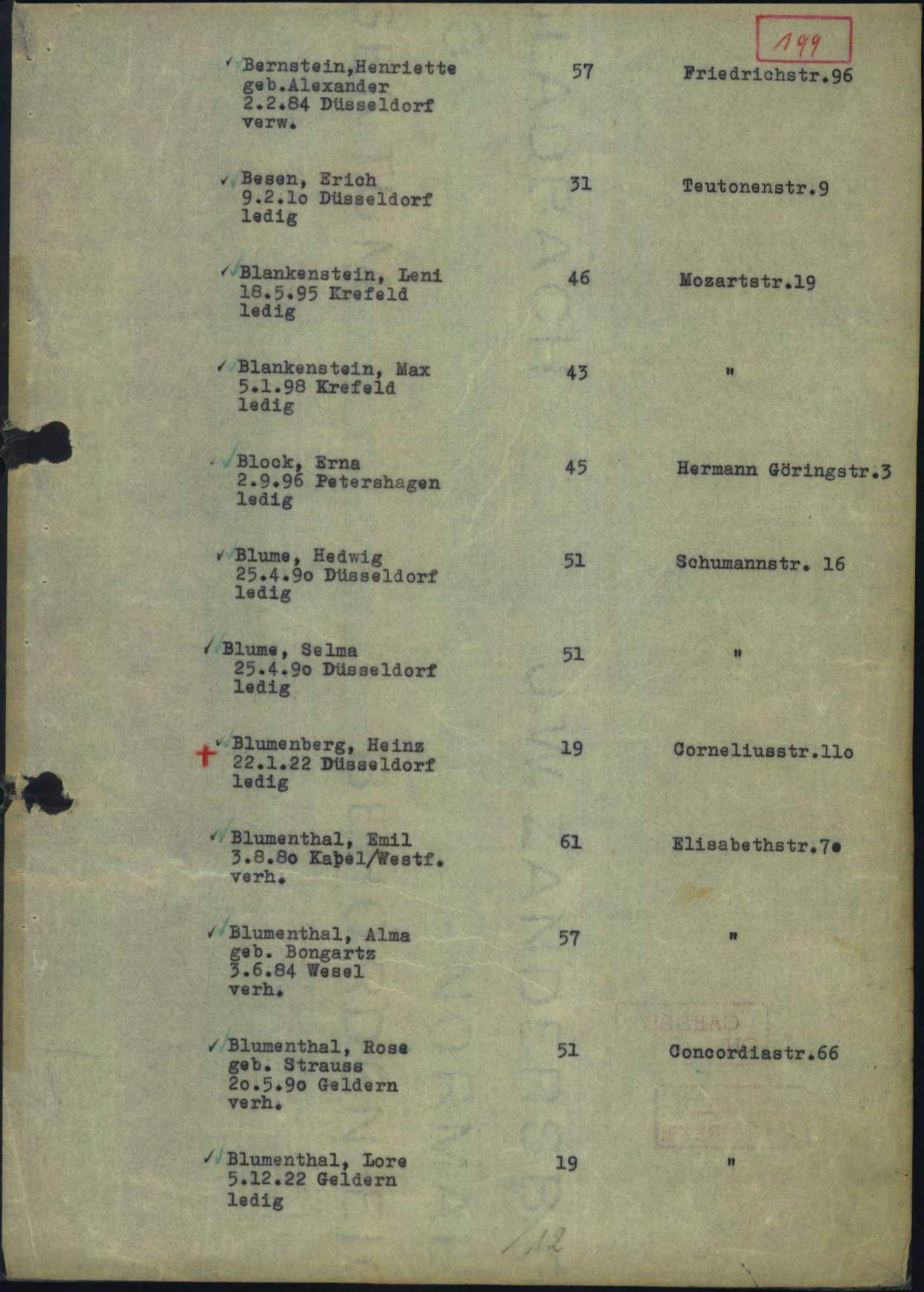 Am 10. November 1941 wurde die verwitwete Henriette Bernstein ins Ghetto Minsk deportiert. Auch ihr Bruder Wilhelm Alexander war mit seiner Frau in diesem Deportationstransport. Alle drei haben nicht überlebt.