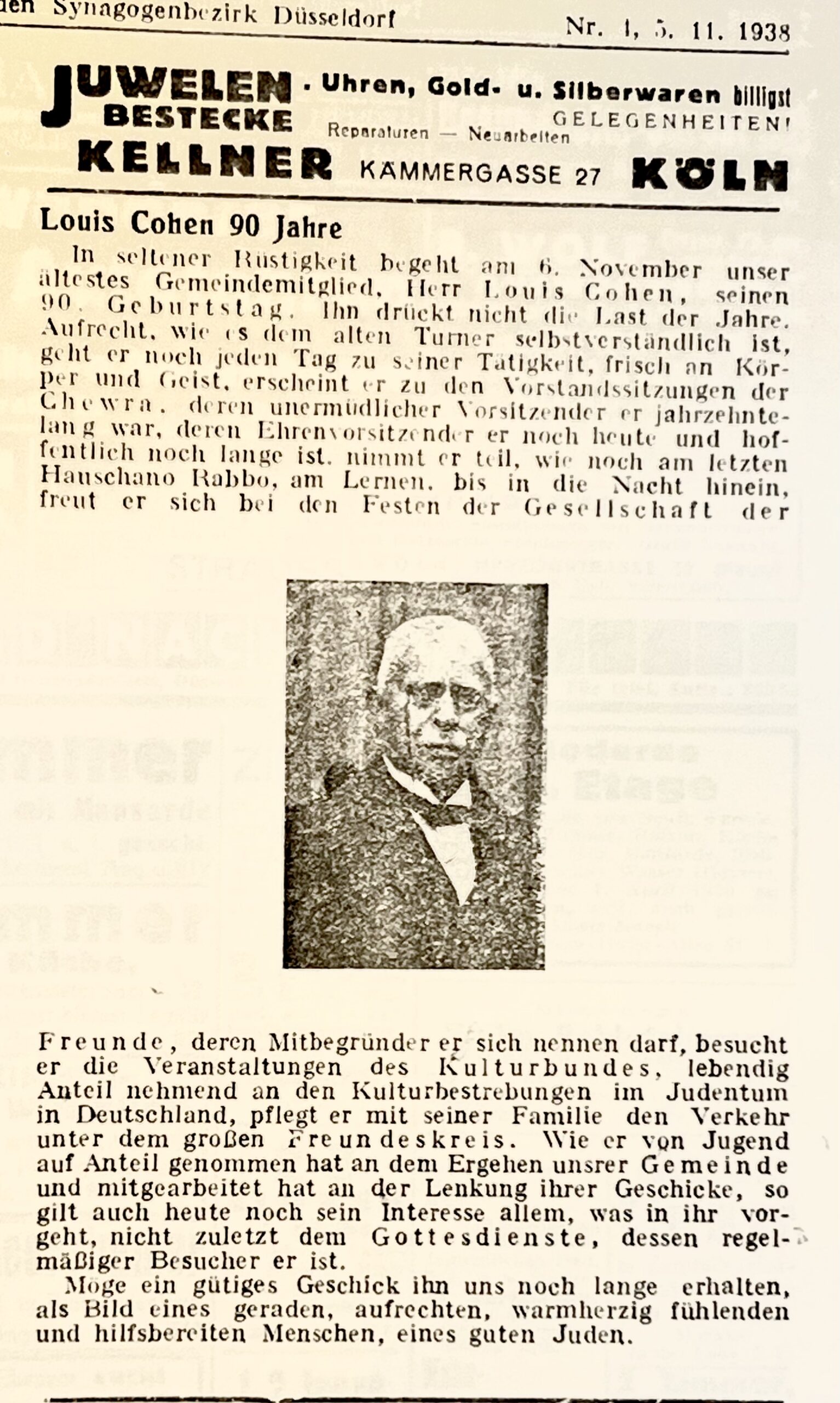 Louis Cohen war Inhaber der Firma “Bacharach, Spanier & Co, Nachfolger” mit Sitz in der Birkenstraße 39. Später wurden seine Kinder Mitinhaber. Nach Beginn der NS-Diktatur liefen die Geschäfte immer schlechter. Sein Sohn Siegfried Cohen starb am 6. September 1934.