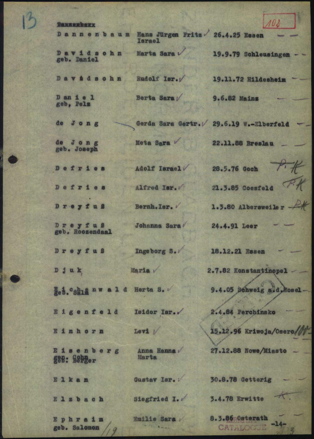 In den folgenden Jahren war die Witwe Berta Daniel unter wechselnden Adressen in Düsseldorf gemeldet, u.a. in der Hüttenstraße 25, der Merowinger Straße 28, der Remscheider Straße 1 und der Hildebrandtstraße 10. In Berta Daniels Geburtsurkunde wurde am 10. Juni 1939 vermerkt, dass sie den jüdischen Zwangsnamen „Sara“ angenommen hat. Ab dem 1. November 1940 bewohnte Berta Daniel zwei Räume in der Grafenberger Allee 129.