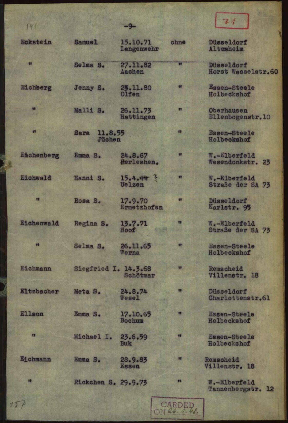 Rosa Eichwald wurde am 21. Juli 1942 von Düsseldorf ins Ghetto Theresienstadt deportiert und zwei Monate später, am 26. September, ins Vernichtungslager Treblinka gebracht und ermordet.