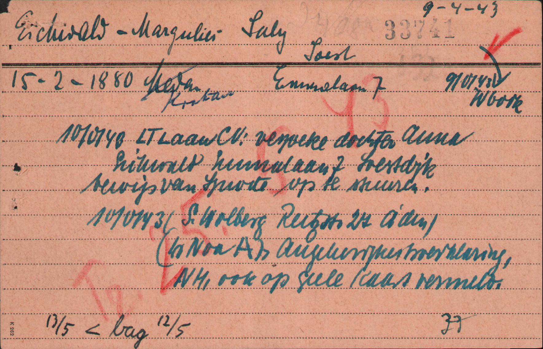 Sali Eichwald war zusammen mit ihrem Ehemann Felix in der Burgemeester Grothestraat 38 in Soest (Soestdijk) gemeldet. Am 12. September 1939 verstarb Felix Eichwald dort im Alter von 70 Jahren.