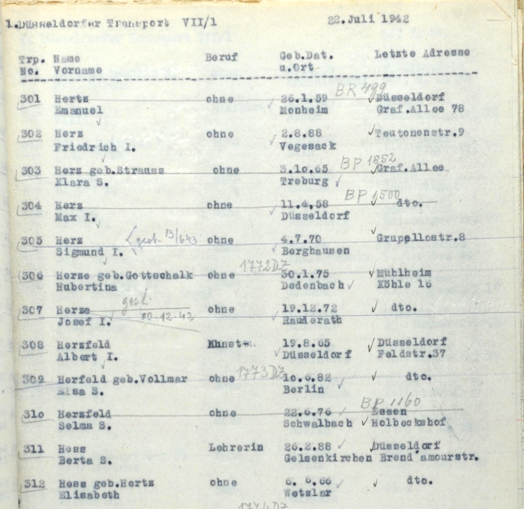 Am 24. Juni 1942 stellte die Stapoleitstelle Düsseldorf daraufhin den Antrag, Berta Hess in das Frauenkonzentrationslager Ravensbrück überführen zu lassen. Der Antrag wurde am 8. Juli 1942 zunächst bewilligt. Zu diesem Zeitpunkt hatte Bertas Mutter Elisabeth aber bereits die Anordnung erhalten, sich für den Transport in das Ghetto Theresienstadt bereit zu halten. Elisabeth Hess stellte den Antrag, dass ihre Tochter Berta Hess sie nach Theresienstadt begleiten dürfe. Dem Antrag wurde stattgegeben.