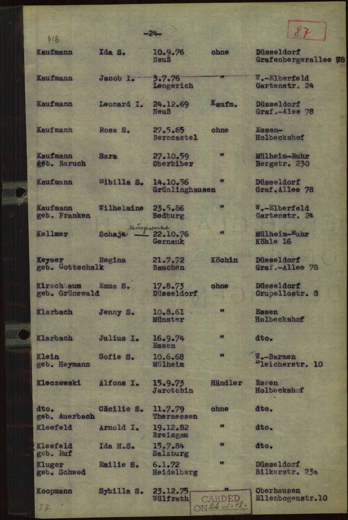 Aus der Steinstraße zogen Emma Kirschbaum, ihre Geschwister und ihr Schwager in die Grupellostraße 8, wo ihr Einzug für den 23. Januar 1942 dokumentiert wurde. Hier wohnten sie als Untermieter der Familie Moser, mit denen sie zuvor bereits in der Steinstraße 82 gewohnt hatten. Rosalie Moser war eine geborene Cahn aus Orsoy und ebenfalls mit ihnen verwandt.