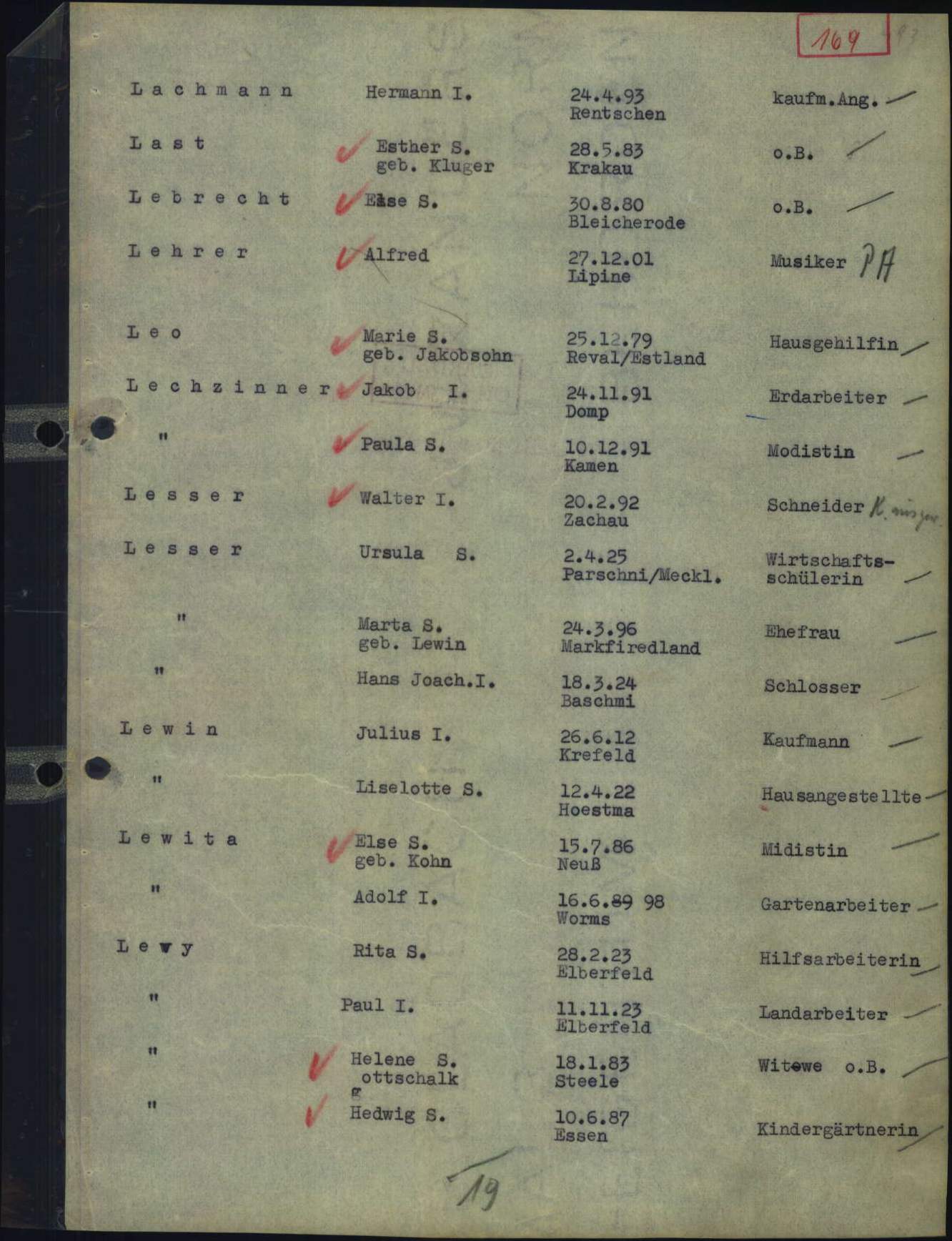 Auch Julius Levin hatte wie sein leiblicher Vater eine Ausbildung zum Maschinenschlosser absolviert und wohnte seit 1920 in Düsseldorf. Seit dem 26. November 1940 wohnte er in der Jahnstraße 3. Dort war er auch zum Zeitpunkt der Eheschließung gemeldet. Am 21. Januar 1941 heiratete er Lotte Steinweg. Die damals 18-Jährige stammte aus dem westfälischen Horstmar bei Steinfurt. Dort war sie am 12. April 1922 zur Welt gekommen. Vor der Hochzeit hatte sie mit ihren Eltern Louis und Rosa Steinweg, geborene Cohen, zunächst in Horstmar gewohnt. Im Januar 1937 zog die Familie nach Krefeld. Hier wurden Lottes jüngste Geschwister, Doris (1937) und Bilba (1939) geboren. Die Familie wohnte in der Elisabethstraße 54 in Krefeld.