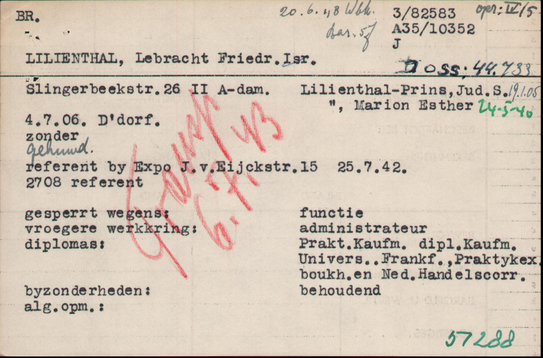 Am 30. November 1941 schrieb seine Mutter Bertha Lilienthal aus Amsterdam an ihren Bruder nach Buenos Aires: „(…) Von uns kann ich G.s.D. berichten, dass wir unserem Alter entsprechend gesund sind u. zufrieden, wenns nur keine Veränderung gibt, wie bisher. Dasselbe gilt von Lebrecht und Juliette u. Marion, die sehr lieb ist.“