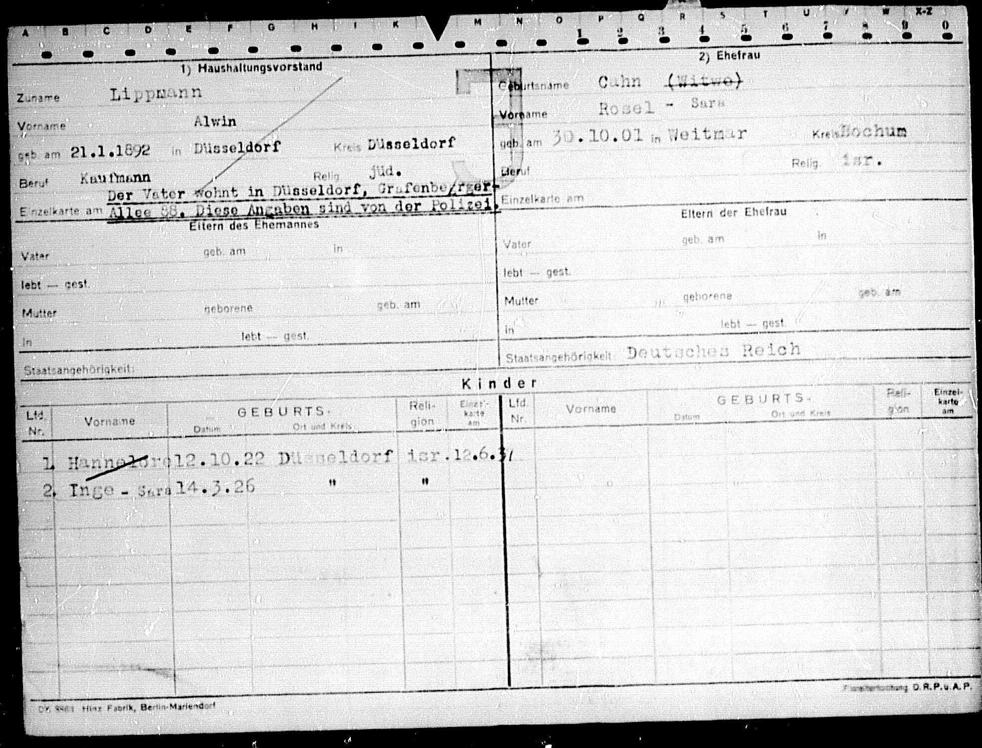 Am 11. August 1938 zog Hannelore Lippmann mit ihrer Familie von der Charlottenstraße 36 in die Grafenberger Allee 88. Dort erlitten sie vermutlich die Überfälle auf jüdische Wohnungen während des Novemberpogroms 1938. Am 13. Dezember 1938 zog Hannelore Lippmann mit ihrer Familie nach Werne. Dort wohnen sie zunächst in der Bonenstraße 20. Am 6. Februar 1939 zogen sie in die Steinstraße 33. Hannelore Lippmann meldete sich von dort als „Haustochter“ am 18. September 1939 wieder nach Düsseldorf in die Harleßstraße 8 ab. Dort wohnte mittlerweile ihre Großmutter Helene Cahn, geborene Gumpert (28. Juli 1869 Werne an der Lippe – 21. September 1942 Treblinka).