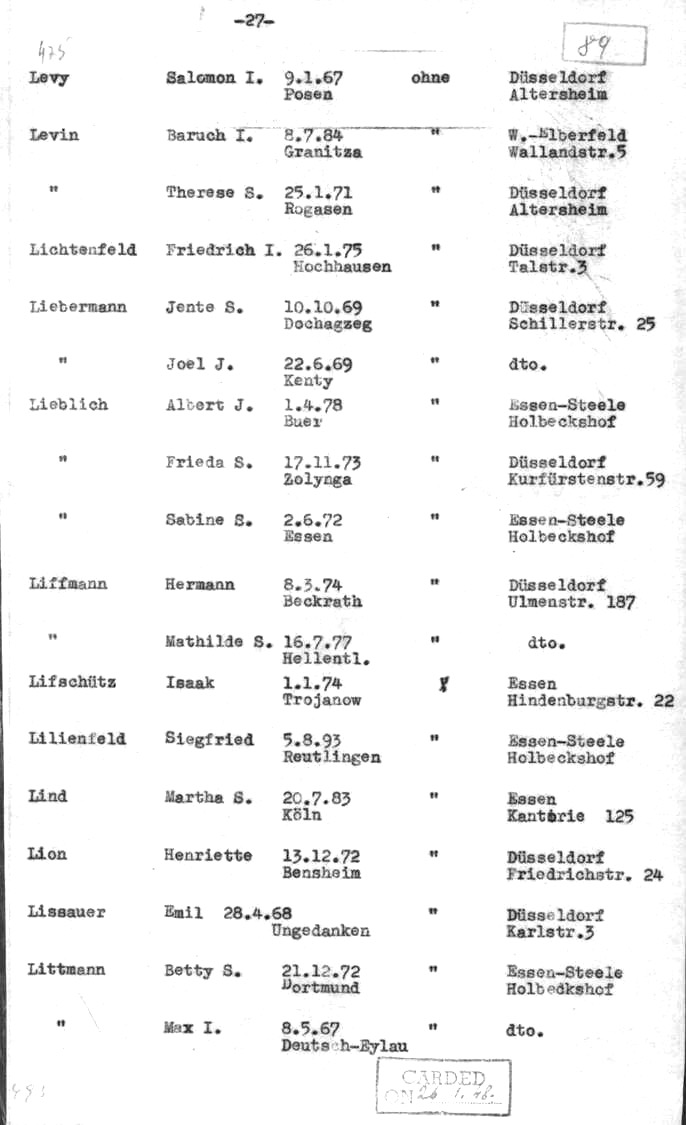 1938 wohnte Emil Lissauer am damaligen Mackensenplatz 58-60 direkt am Düsseldorfer Polizeipräsidium. Ob er während des Novemberpogroms 1938 in seiner Wohnung überfallen wurde ist leider nicht bekannt.