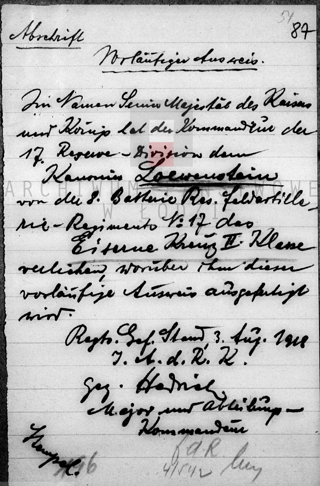 Hugo und Johanna Löwenstein wurden am 27. Oktober 1941 von Düsseldorf in das Ghetto von Litzmannstadt/Łódź deportiert. Sie mussten dort mit weiteren Kollektivmitgliedern im Zimmer 9 der Kollektivunterkunft Fischstraße 15 leben. Seine Schwester Dina Sternberg, geborene Löwenstein, schrieb am 29. November 1941 aus Aachen an Rudi Löwenstein in England: „Vor einigen Wochen war ich in Düsseldorf und habe mich von deinen Eltern verabschiedet. Dieselben sind ausgewandert und haben jetzt folgende Adresse: Litzmannstadt-Getto, postlagernd und 1 Düsseldorfer Transport. Du willst also in Zukunft dorthin schreiben. Onkel Artur und Aenne sind auch mit und der alte Opa ist noch in Düsseldorf. Ich habe eine Karte von dort bekommen und es geht ihnen gut. […]“
