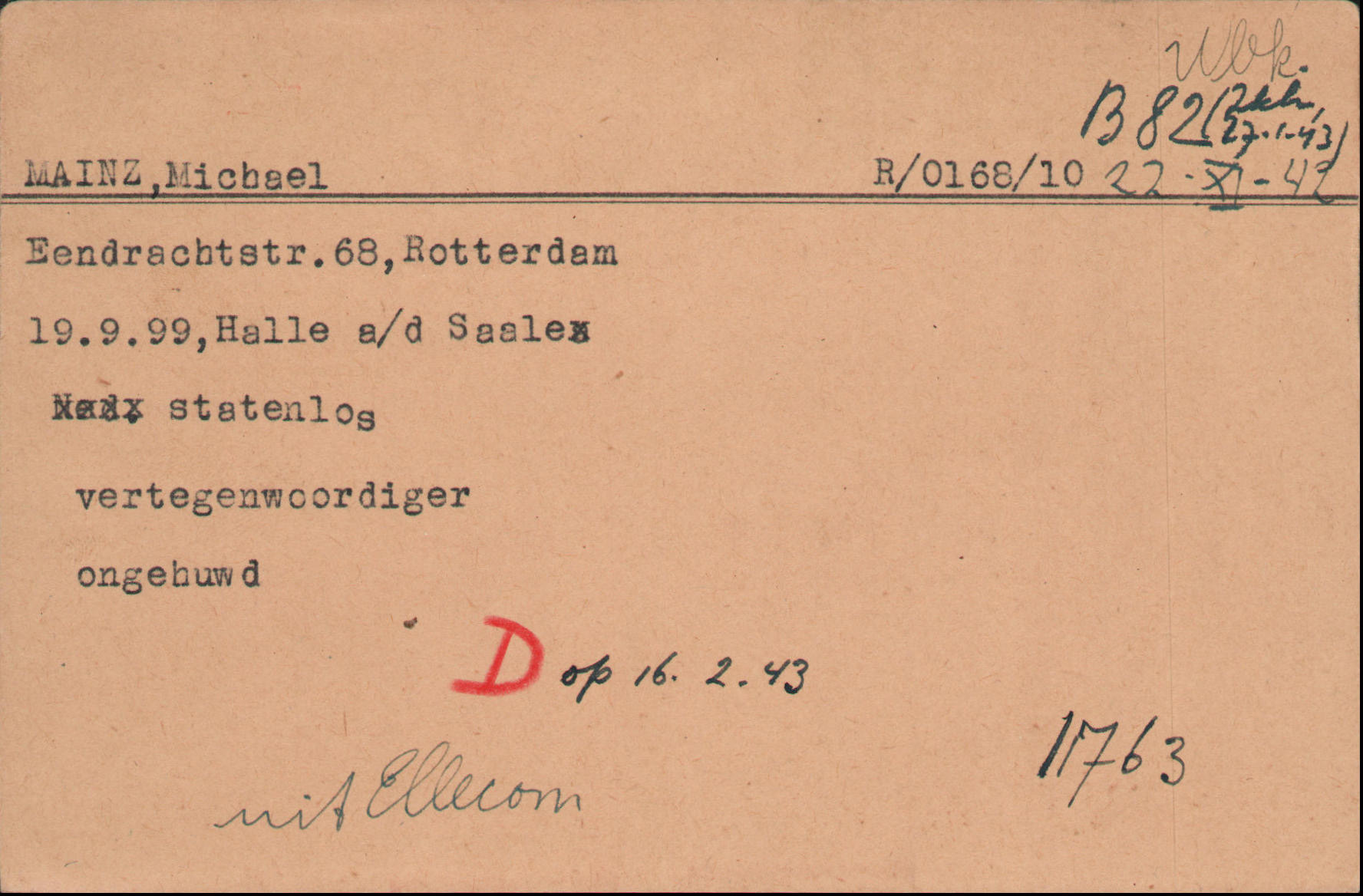 Im Jahr 1942 begannen erste Razzien in Rotterdam gegen die dort lebende jüdische Bevölkerung. Auch Michael Mainz wurde verhaftet. Seit dem 22. November 1942 befand er sich im Durchgangslager Westerbork. Seine Unterkunft wurde am 25. November 1942 von Nationalsozialisten und einem holländischen Polizeibeamten aufgesucht und „eine Kiste und ein Koffer“ beschlagnahmt.