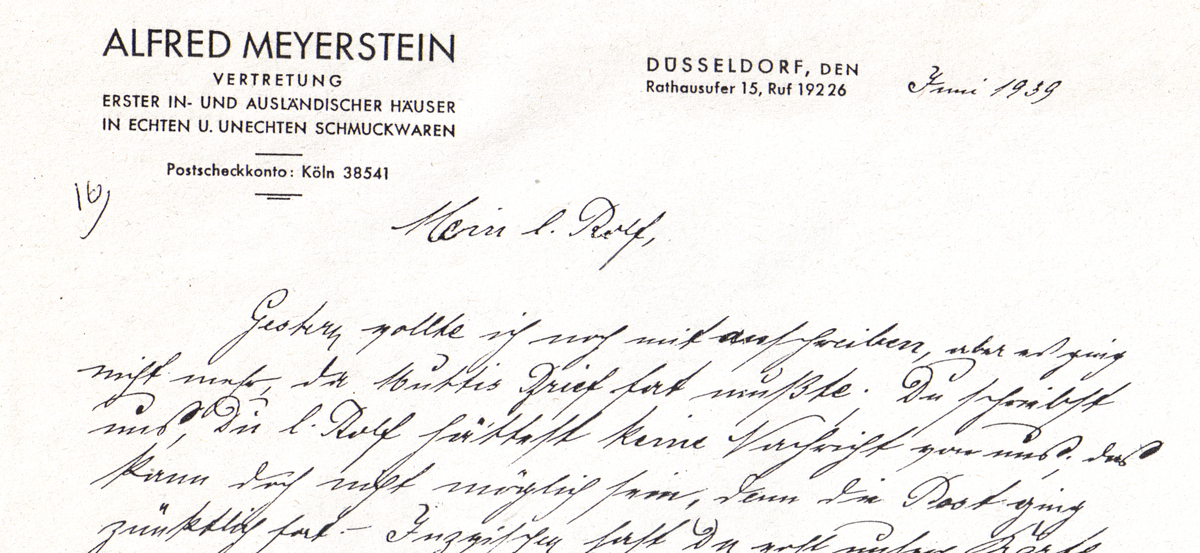 Nach der Machtübernahme der Nationalsozialisten 1933 begann auch für die Meyersteins der gesellschaftliche Abstieg. Alfred Meyerstein unterhielt nun eine Vertretung für „echte und unechte Schmuckwaren“.