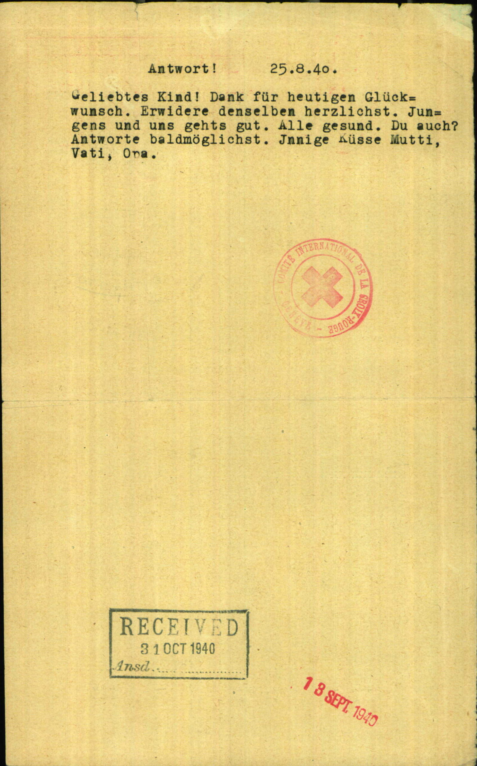 Am 13. Juni 1940 verfasste ihre Tochter Eva in Großbritannien einen Rot-Kreuz-Brief für sie. Sie schrieb: „Geliebte Mutti. Allerherrlichste Wünsche zum Geburtstag und alles Gute wünsche von ganzem Herzen Dir Deine Eva. Kuß für alle.“ Jenny Moser antworte am 25. August 1940: „Geliebtes Kind! Dank für heutigen Glückwunsch. Erwidere denselben herzlichst. Jungens und uns gehts gut. Alle gesund. Du auch? Antworte baldmöglichst. Innige Küsse Mutti, Vati, Opa“. Am 13. April 1941 verstarb ihr Vater Simon Heidt im Altenheim der Jüdischen Gemeinde Düsseldorf im Haus Grafenberger Allee 78. Er erhielt einen Grabstein neben dem seiner Frau auf dem jüdischen Friedhof in Warburg.