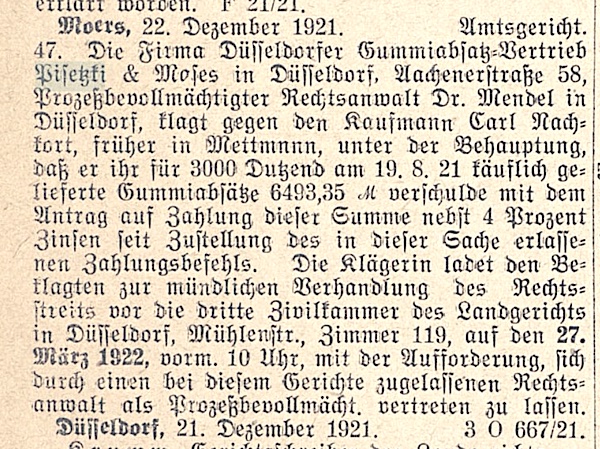 Die Familie Moses wohnte in Düsseldorf auch für einige Zeit in der Bismarckstraße 97. Am 18. Mai 1933 meldeten sie sich in die Kaiser-Wilhelm-Straße 53 um, aber nach nur wenigen Monaten zogen sie am 30. Dezember 1933 weiter in die Graf-Adolf-Straße 41. Simon Moses besaß noch ein Grundstück in Mülheim an der Ruhr in der Bahnstraße 19. Dieses Haus wurde am 5. September 1940 zwangsversteigert.
