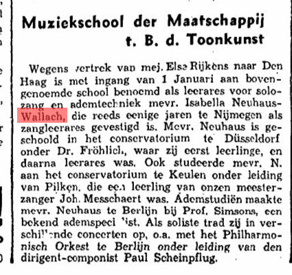In den Niederlanden nannte sie sich Isa Neuhaus und gab in Nijmegen Gesangsstunden. Sie war Dozentin einer dortigen Musikschule. Mit den Einnahmen unterstützte sie auch ihre Eltern finanziell. Auch ihr Bruder Ernst Adolf Wallach emigrierte 1934 in die Niederlande. Er zog jedoch nach Amsterdam.