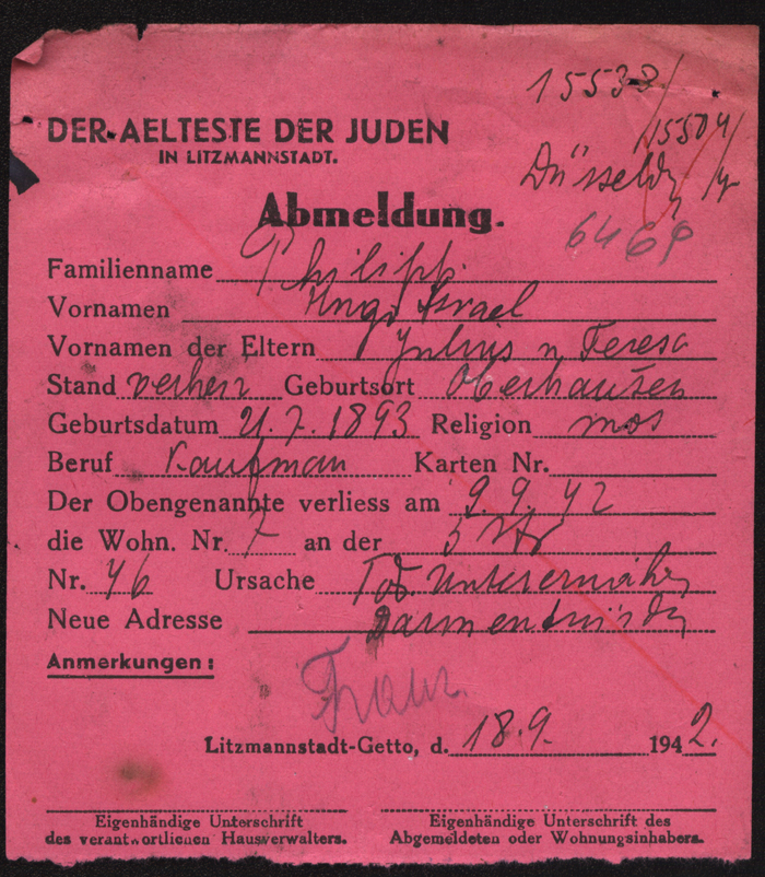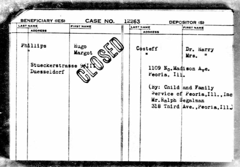 Am 27. Oktober 1941 wurden Hugo und Margot Philipps von Düsseldorf in das Ghetto von Litzmannstadt/Łódź deportiert. Sie mussten dort mit 62 weiteren Deportierten in der Kollektivunterkunft der Fischstraße 21, Zimmer 19, leben.