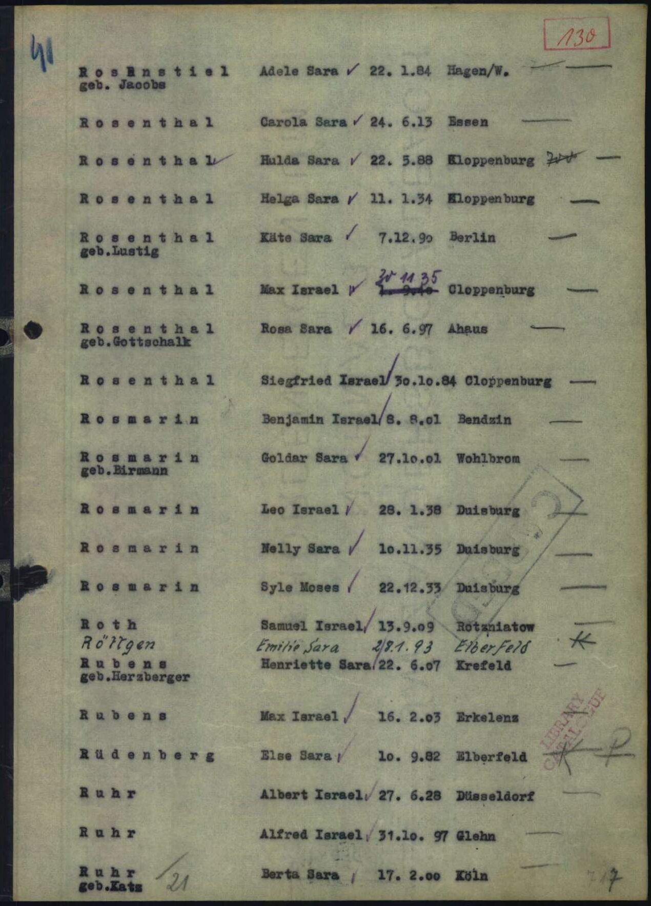 Else Rüdenberg wurde am 7. Mai 1942 mit dem IV. Transport aus dem Ghetto von Litzmannstadt/Łódź gebracht und am nächsten Tag im Vernichtungslager Chełmno ermordet.