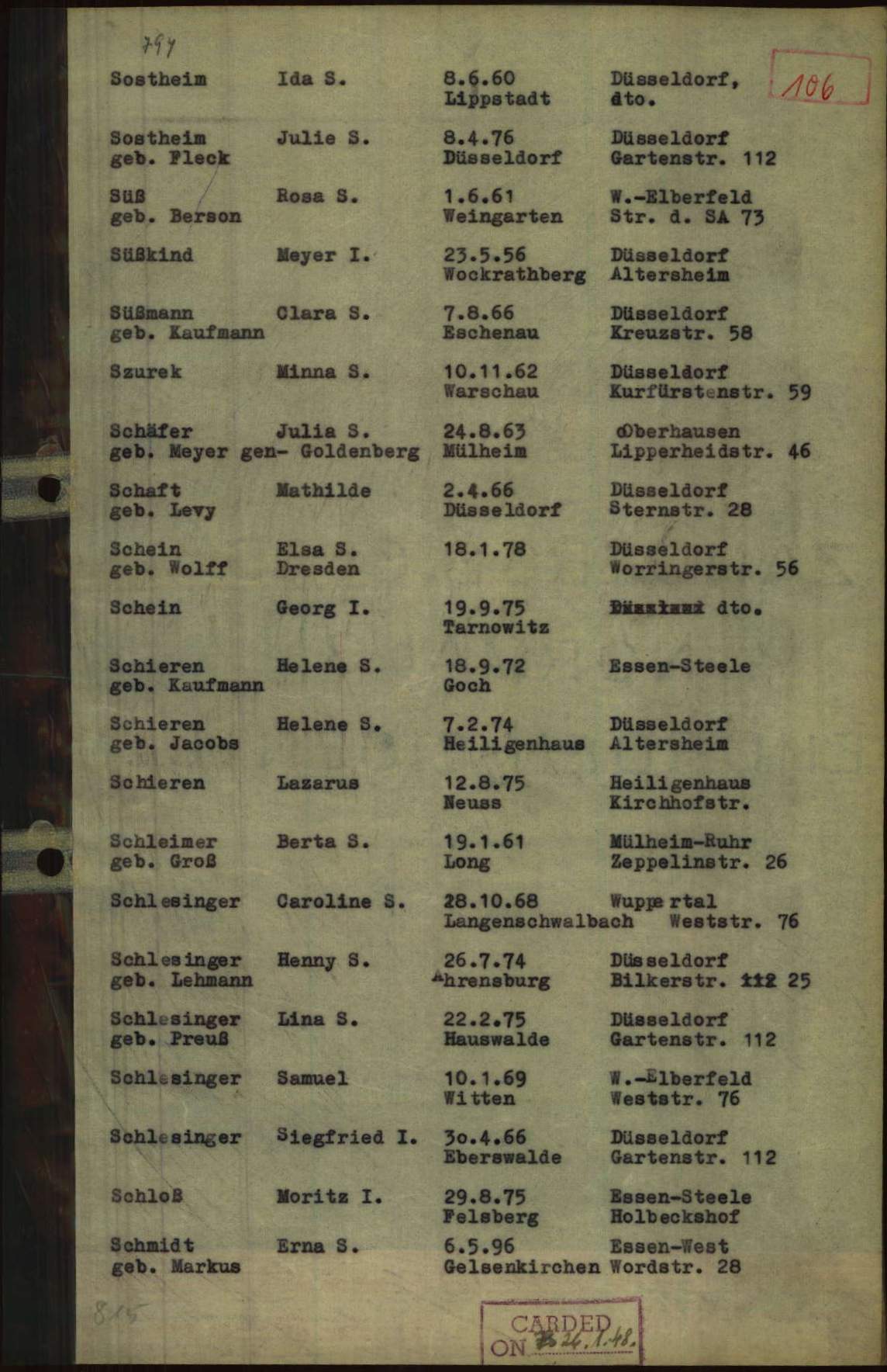 Vom Karlplatz zogen Henny und ihr ältester Sohn Erwin auf die Derendorfer Straße 13, wo Hennys Einzug für den 8. April 1939 und Erwins Einzug für den 13. April 1939 dokumentiert wurde.