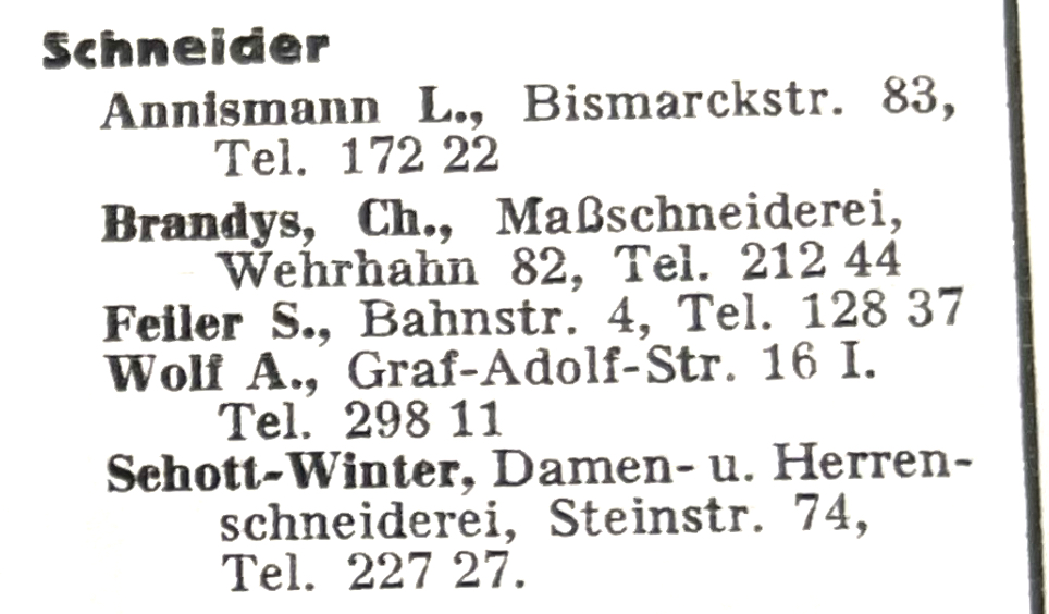 Am 17. Februar 1939 zog die Familie Schott in die Gartenstraße 112 um. Ein Zimmer dieser Wohnung stellten sie einem Untermieter zur Verfügung. Da dem Ehepaar Schott seit dem 1. Januar 1939 durch Verordnungen der Nationalsozialisten die Möglichkeit genommen war, ihren eigenen Betrieb fortzuführen, musste Elfriede Schott 1941 eine Zulassung als Näherin für Ausbesserungsarbeiten beantragen, die ihr aber verwehrt blieb. Siegfried Schott leistete zuletzt Zwangsarbeit in Düsseldorf, sein Arbeitsbuch trug die Nummer 169/245925.