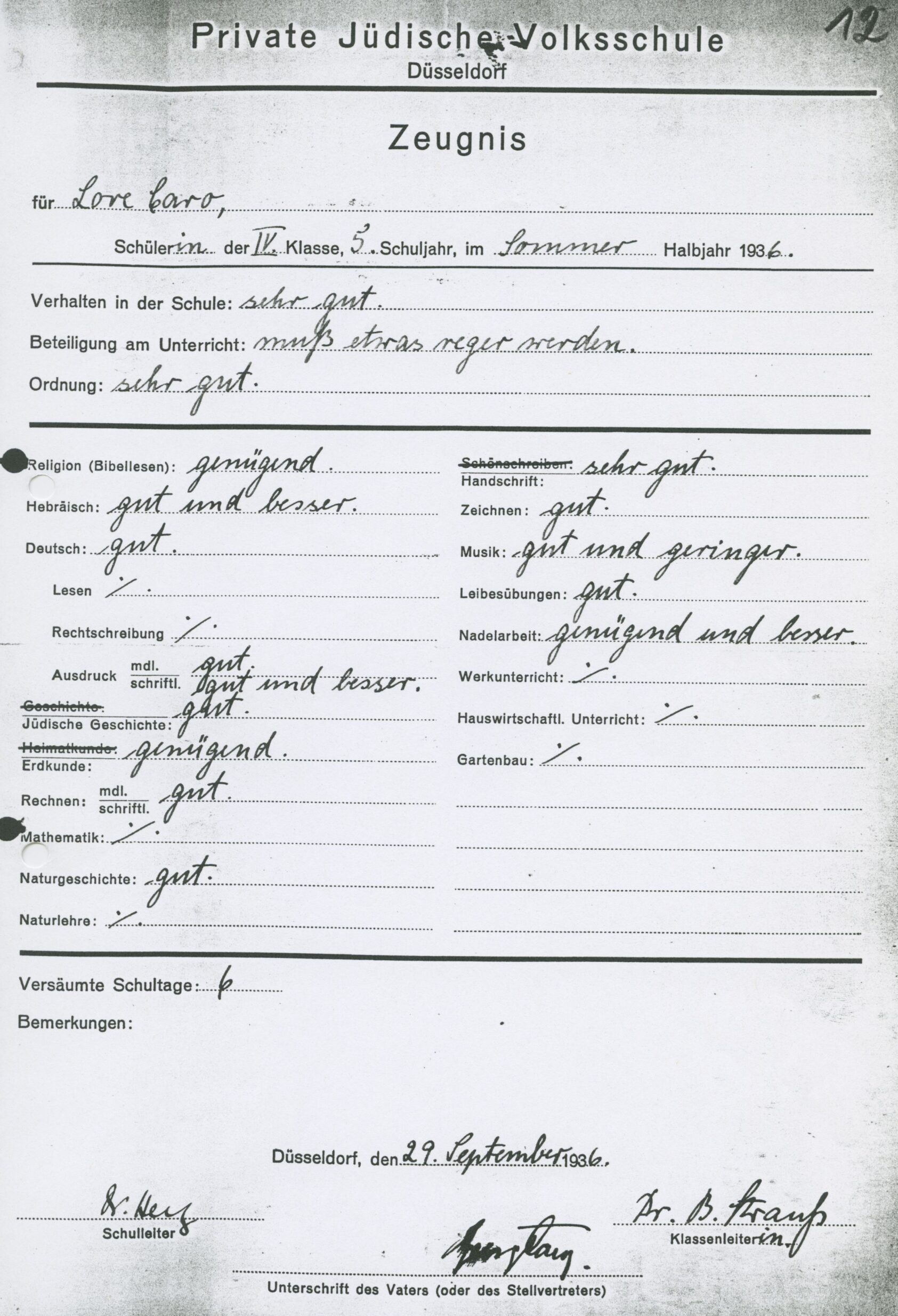 Sie zog 1936 nach Düsseldorf um eine Stelle an der 1935 eingerichteten Jüdischen Volksschule anzutreten. Dr. Strauß lehrte dort Sprachen und auch Landeskunde. Der frühere Düsseldorfer Henry Rose, früher Heinz Rosenstein, Jahrgang 1919, beschreibt sie als eine ganz großartige Lehrerin mit enormem Mut in der schweren Zeit der Diskriminierung und Verfolgung. Seit dem 16. April 1936 wohnte Dr. Beatrice Strauß in der Feldstraße 34. Dort wohnten schon zur Untermiete auch ihre Schulkollegin Grete Eichelberg und der Lehrer Kurt Schnook.