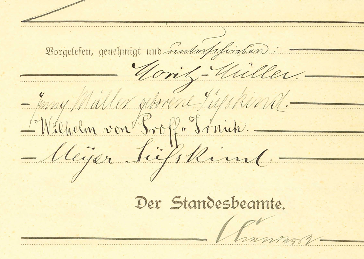 Am 3. Juni 1942 zog Meyer Süßkind von der Zietenstraße 6 kommend in das Altenheim der Jüdischen Gemeinde in die Grafenberger Allee 78. Dort wohnte Meyer Süßkind zusammen mit seiner verwitweten Tochter Jenny Müller, geborene Süßkind. Sie wohnte bereits seit dem 30. Januar 1942 im Gemeindehaus.