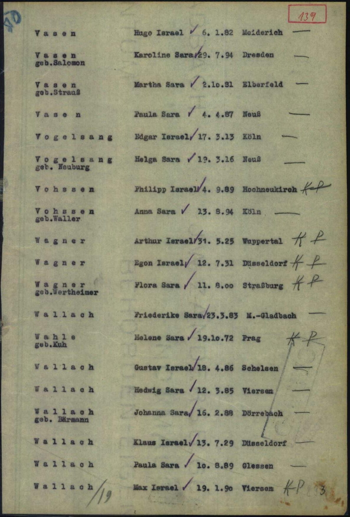 In der NS-Zeit versuchte Max Wallach die Auswanderung der Familie zu organisieren und stellte am 28. Januar 1939 einen Passantrag. In der von den Nationalsozialisten vor der Deportation erzwungenen Vermögenserklärung gab er ein Konto bei der Commerz- und Privatbank Düsseldorf mit einem Bestand von 9.866,48 RM an.