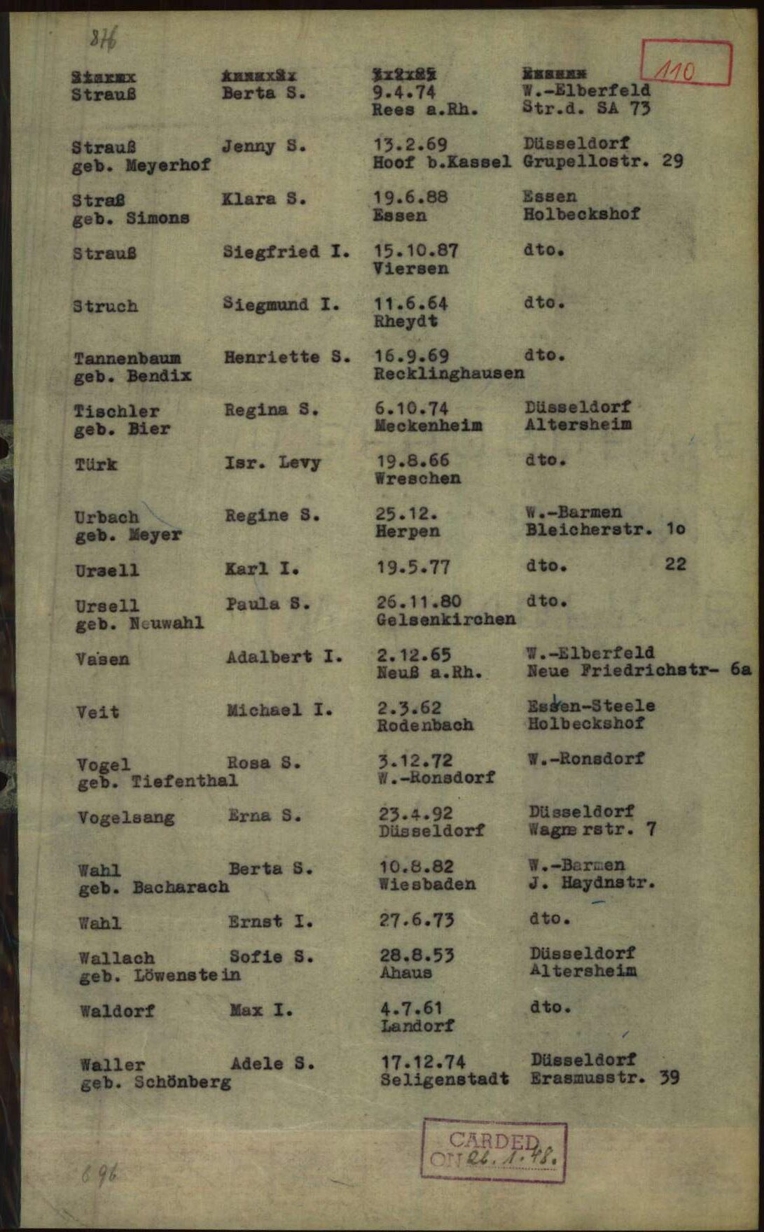 Am 27. Januar 1940 zog ihre unverheiratete Tochter Lina Wallach aus Schiefbahn zu ihnen in die Grafenberger Allee 78. Lina hatte all die Jahre zusammen bei Sophie Wallach im Haus in Schiefbahn gelebt. Am 5. März 1941 folgte auch Sophie Wallach, ebenfalls aus Schiefbahn kommend. Am 20. Juni 1941 meldete sie sich noch einmal nach Schiefbahn ab. Möglicherweise hatte dies mit der Krankheit ihres Sohnes David Wallach zu tun.