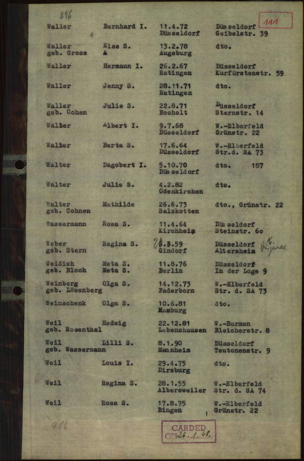 Hermann Waller wohnte mit seiner ledigen Schwester Janette, genannt Jenny, in der Lindenstraße 198. Hier erlitten sie die beständige Zunahme der Diskriminierung jüdischer Bürgerinnen und Bürger während der NS-Zeit. Ob sie auch ein Opfer der Überfälle während des Novemberpogroms 1938 geworden sind, ist nicht bekannt.
