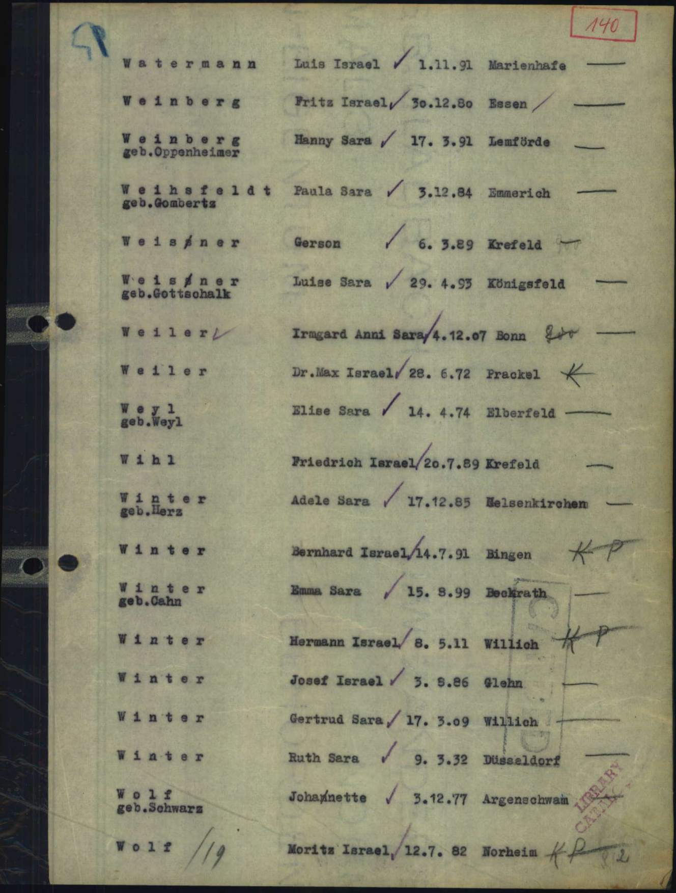 Im Frühjahr 1944 beauftragte „Der Oberfinanzpräsident Düsseldorf – Dienststelle für die Einziehung eingezogener Vermögenswerte“ die Commerzbank Düsseldorf mit der Einziehung des Vermögens von Fritz Weinberg. In einem Schreiben vom 4. April 1944 heißt es: „Durch [den] Beschluss des Regierungspräsidenten Düsseldorf vom 25.10.41 wird das Vermögen des Juden Fritz Israel Weinberg, wohnhaft: Düsseldorf, Schützenstr. 39, zu Gunsten des Reiches eingezogen. […] Nach einer hier vorliegenden Erklärung besitzt er [Fritz Weinberg] bei Ihrer Bank [Commerzbank] ein Gemeinschaftskonto und Depot ‚Ernst Isr. und Fritz Israel Weinberg‘. Aufgrund meiner Zuständigkeit für die Einziehung bitte ich das Guthaben nebst den abgelaufenen Zinsen sofort an die Oberfinanzkasse […] zu überweisen.“ Fritz‘ Schwester, Margarete Jacobi, und drei seiner Neffen und Nichten, erstritten in der „Wiedergutmachungssache“ 1952 gegen das „Deutsche Reich, vertreten durch die Oberfinanzdirektion in Düsseldorf“ die Rückerstattung des Eigentums von Fritz Weinberg.